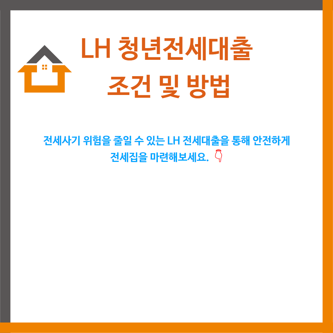 LH 청년전세대출 조건과 신청 방법을 2025년 최신 정보 기준으로 정리했습니다. 전세사기 위험을 줄일 수 있는 LH 전세대출을 통해 안전하게 전세집을 마련해보세요. LH 청년전세대출 조건/신청 방법 LH 청년전세대출 신청 바로가기 LH 전세대출 안내